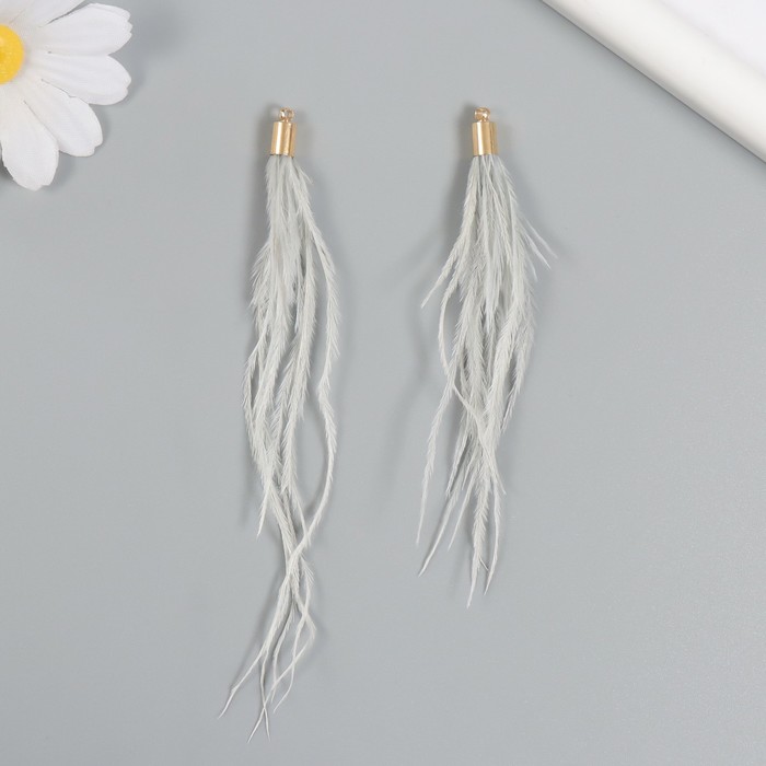 Декор для творчества перо «Кисть Страус», набор 2 шт., серый, 9×0.5 см