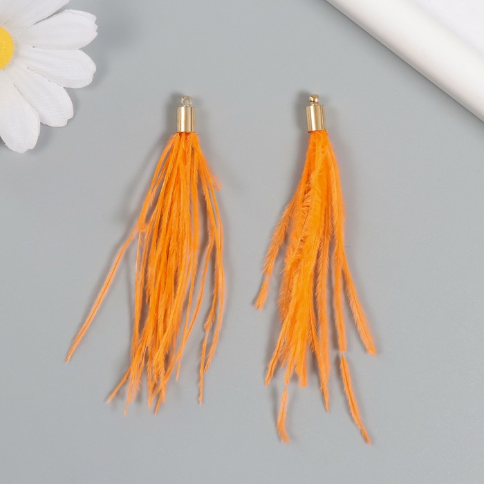 Декор для творчества перо «Кисть Страус», набор 2 шт., персик, 9×0.5 см