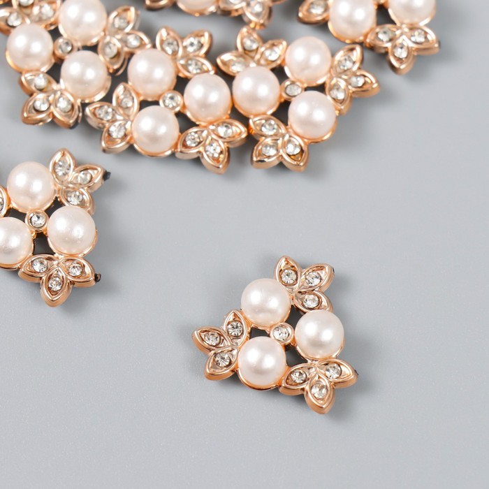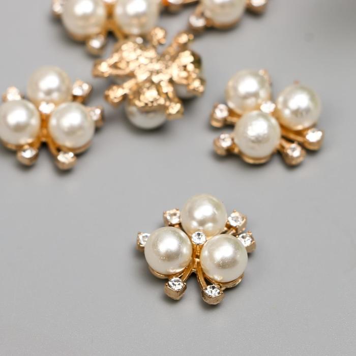 Декор для творчества пластик, стразы "3 жемчужины с листиками" набор 15 шт 2х2 см
