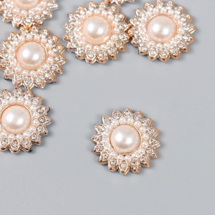 Декор для творчества пластик, стразы "Жемчужная астра" набор 10 шт 2х2 см