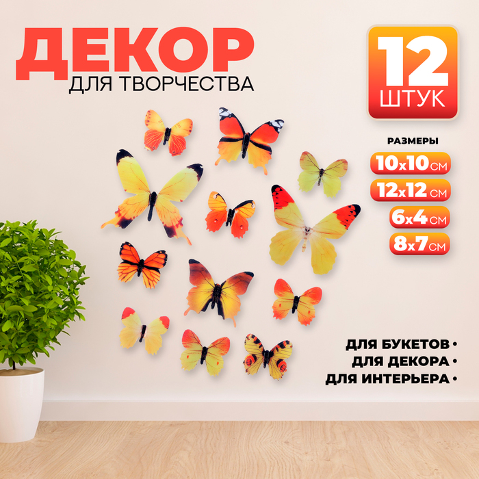 Набор для украшения «Бабочки», 12 шт., цвет жёлтый