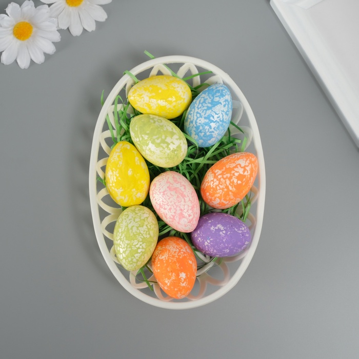 Пасхальный декор для творчества «Яйца с кружевом в гнездышке», набор 9 шт., настольная фигурка, 3.5×12×18 см