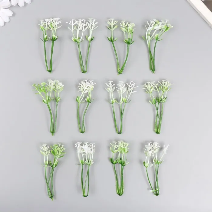 Искусственное растение для творчества "Луговой цветок" набор 12 шт белый 13 см
