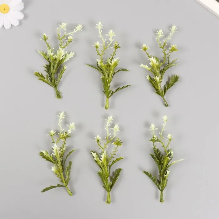 Искусственное растение для творчества "Иглица с цветками" набор 6 шт зелёный 12,5 см