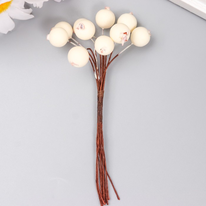 Декор для творчества «Ягодки белые», 1 букет=10 ягод, d=1 см, 10 см