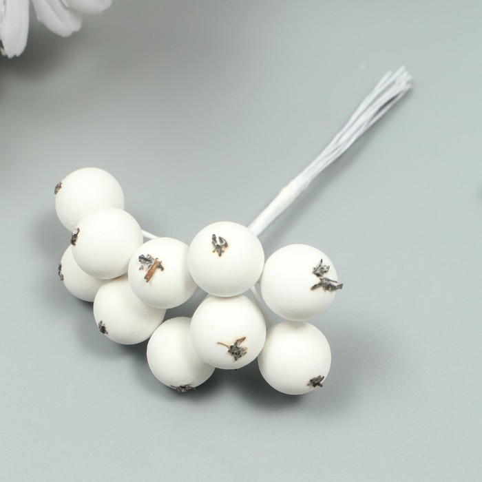 Декор для творчества «Ягодка рябины», 1 букет=10 ягод, белый, 10×1.5 см
