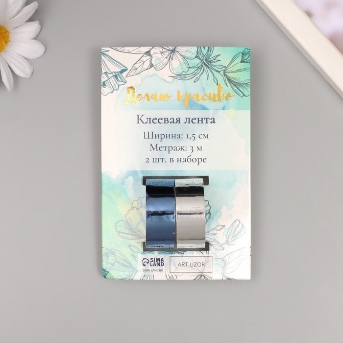 Клейкая лента декоративная пластик «Металлик. Серебро, синий», набор 2 шт., 1.5 см, дл. 3 м