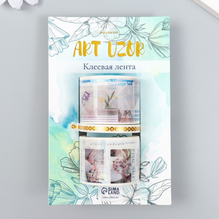 Клейкая лента бумага «Письма», набор 3 шт., ш. 0.5 см, 3 см, намотка 2 м