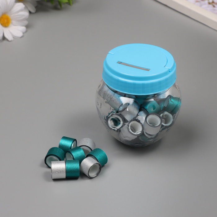 Клейкая лента пластик в банке «Глори. Серебро, голубой», набор 40 шт., 1.2 см, дл.0.9 м, 7×7×9 см