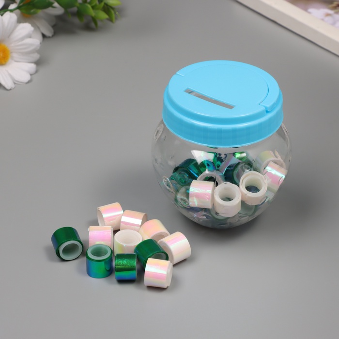 Клейкая лента пластик в банке «Перл. Белый и зелёный», набор 40 шт., 1.2 см, дл.0.9 м, 7×7×9 см