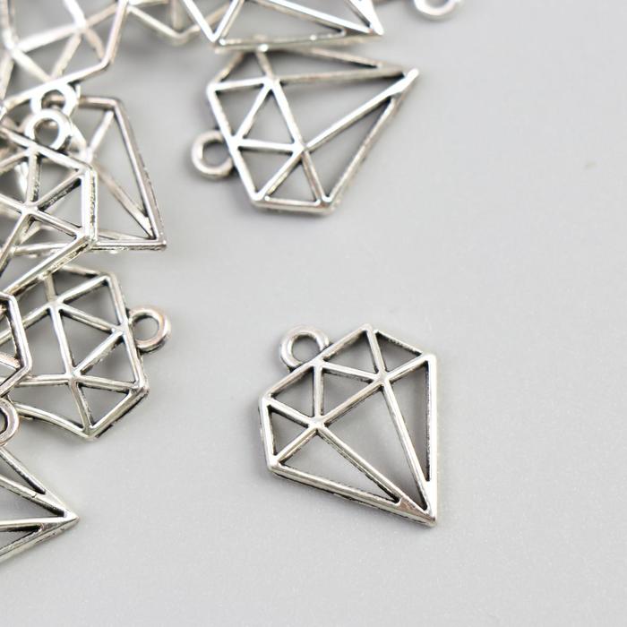 Металлический элемент, декоративная подвеска «Арт Узор. Бриллиант», серебро, 1.9×1.6 см