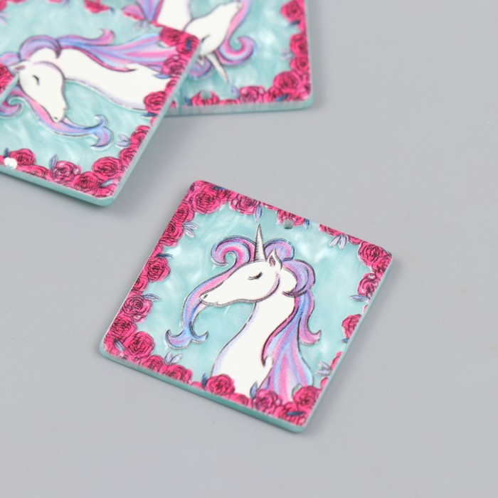 Декор для творчества акрил «Единорог в розах», 0.2×3.5×3.5 см