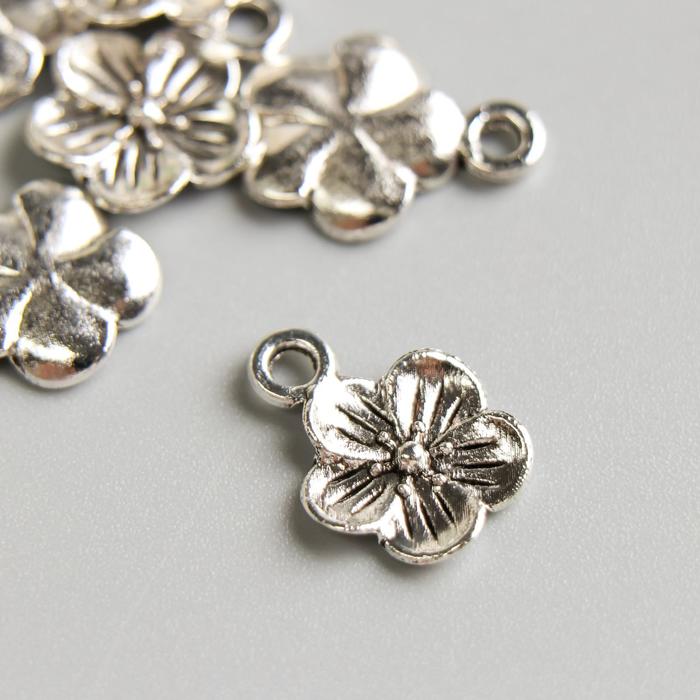 Металлический элемент, декоративная подвеска «Арт Узор. Незабудка», серебро, 1.2×0.8 см