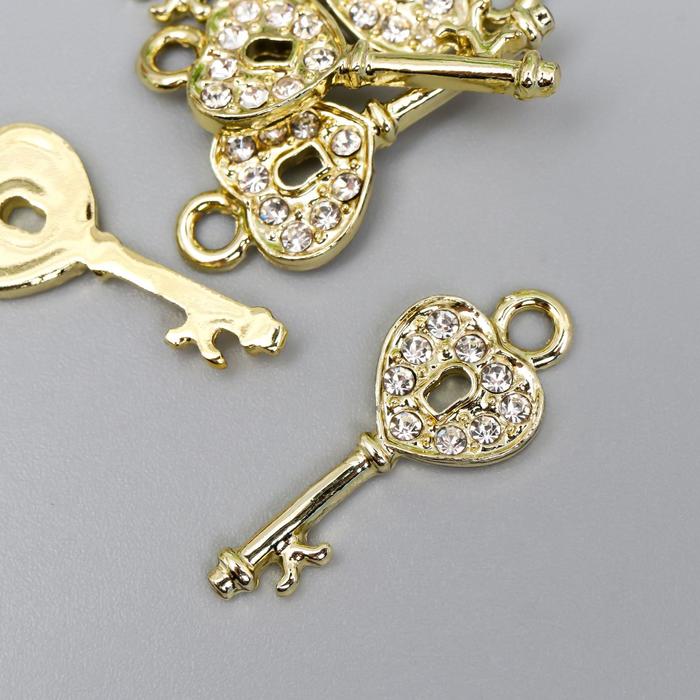 Металлический элемент, декоративная подвеска «Арт Узор. Ключик», стразы, 2.3×1 см