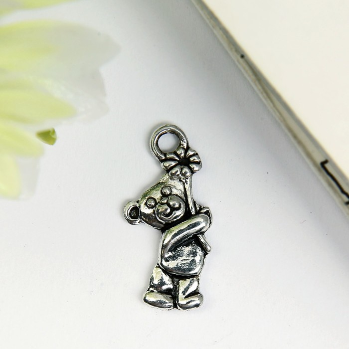 Металлический элемент, декоративная подвеска «Арт Узор. Мишка с ромашкой», серебро, 2×1 см