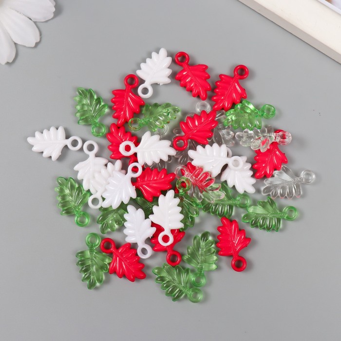 Декор для творчества «Листья. Розовый, зелёный, белый и прозрачный», набор 20 г, 2.2×1.4×0.4 см