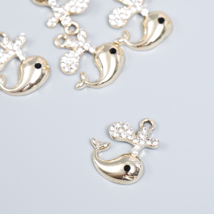 Декор для творчества металл, стразы «Весёлый кит с фонтанчиком», золото, 1.7×2 см