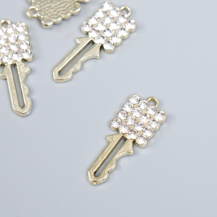Декор для творчества металл, стразы «Ключик», золото, 2.5×0.9 см