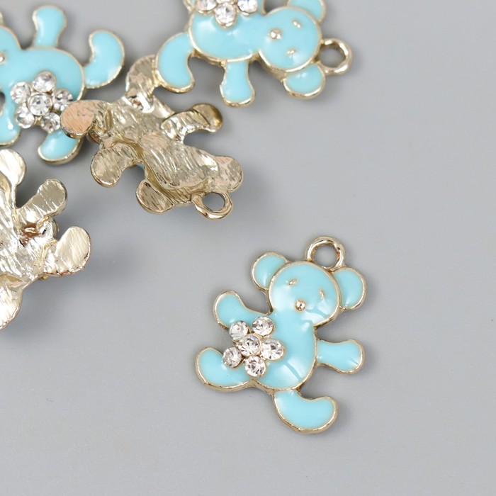 Декор для творчества металл, эмаль, стразы «Мишка с цветочком», голубой, золото, 0.5×1.7×2 см