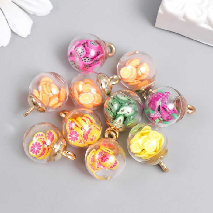 Подвеска для творчества стекло, пластик «Фрукты в шаре», набор 10 шт., 2×1.8 см