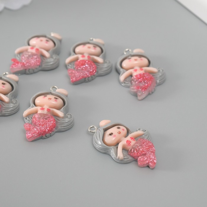 Подвеска для творчества пластик «Русалочка с серыми волосами», 3.4×2.1×0.6 см