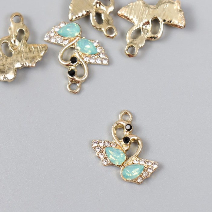 Декор для творчества металл, стразы "Два лебедя" золото, зелёный 1,5х1,8 см