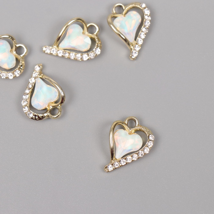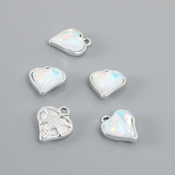 Декор для творчества металл, страз «Сердечко», белый, 1.6×1.4 см