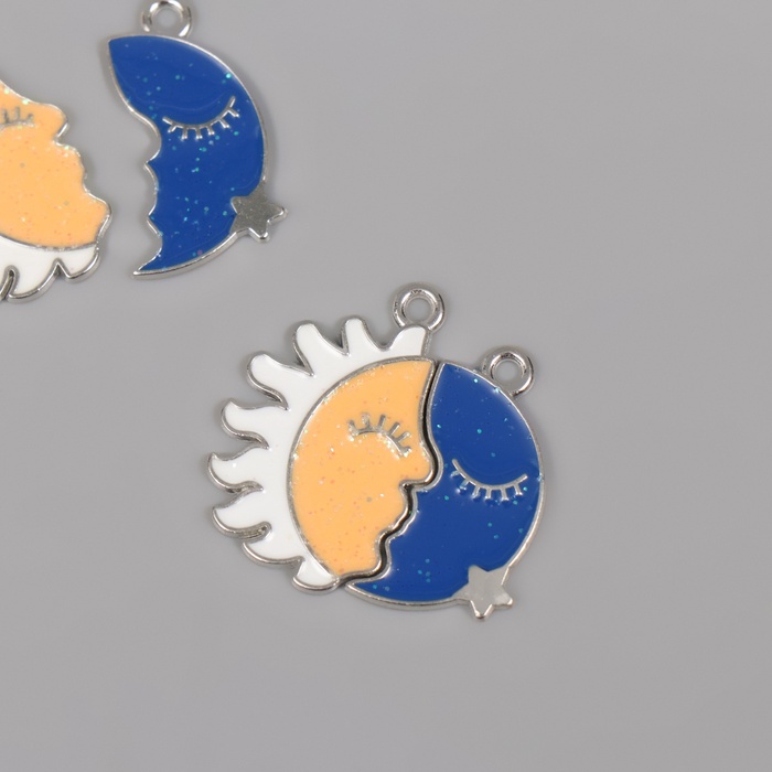Декор для творчества металл, эмаль «Солнце + месяц», набор 2 шт., 2.9×2.7 см