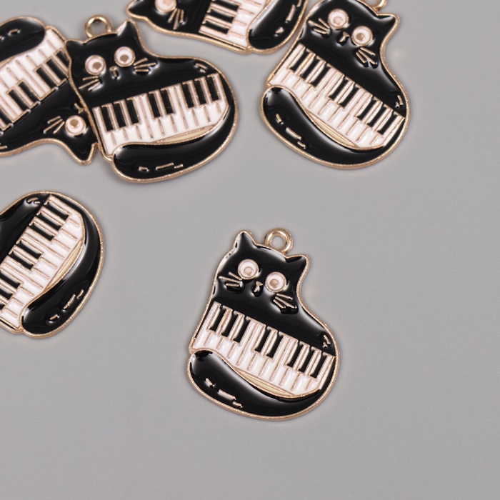 Декор для творчества металл, эмаль «Чёрный котик и пианино», 2.9×2 см