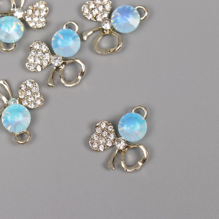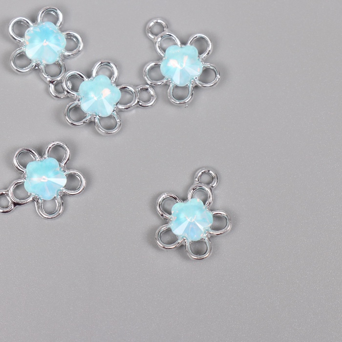 Декор для творчества металл «Цветок», серебро, голубой, 1.8×1.5×0.5 см