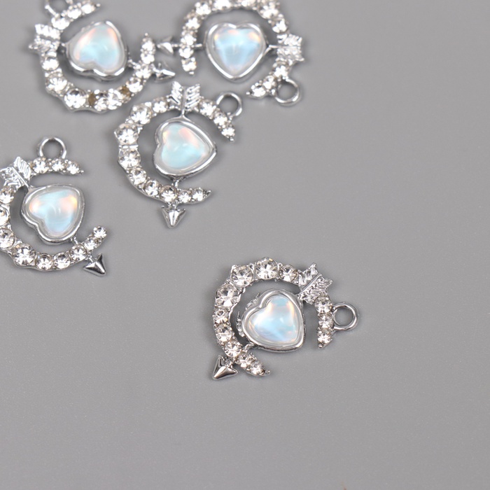 Декор для творчества металл, стразы «Сердце в месяце», серебро, 2×1.5×0.5 см