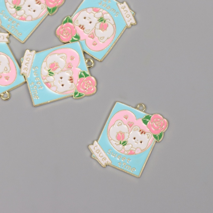 Декор для творчества металл, эмаль «Два влюблённых котика», 2.8×2.4 см