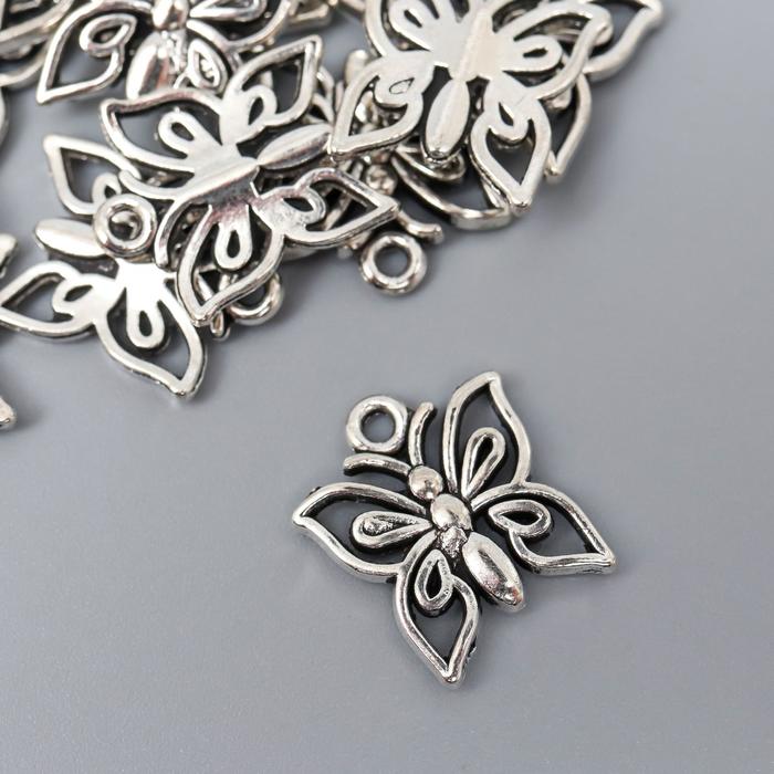 Металлический элемент, декоративная подвеска «Арт Узор. Бабочка», серебро, 1.5×1.3 см