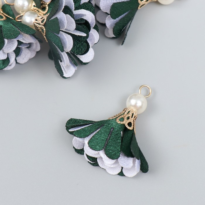 Декор текстиль «Цветок 2 с жемчужиной. Хвойный и белый», набор 6 шт., 3 см