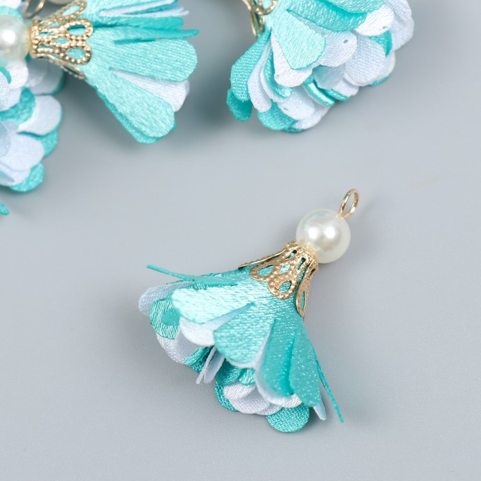 Декор текстиль «Цветок 2 с жемчужиной. Небесный и белый», набор 6 шт., 3 см
