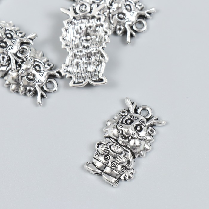 Металлический элемент, декоративная подвеска «Арт Узор. Дракон», набор 6 шт., серебро, 1.6×2.7 см