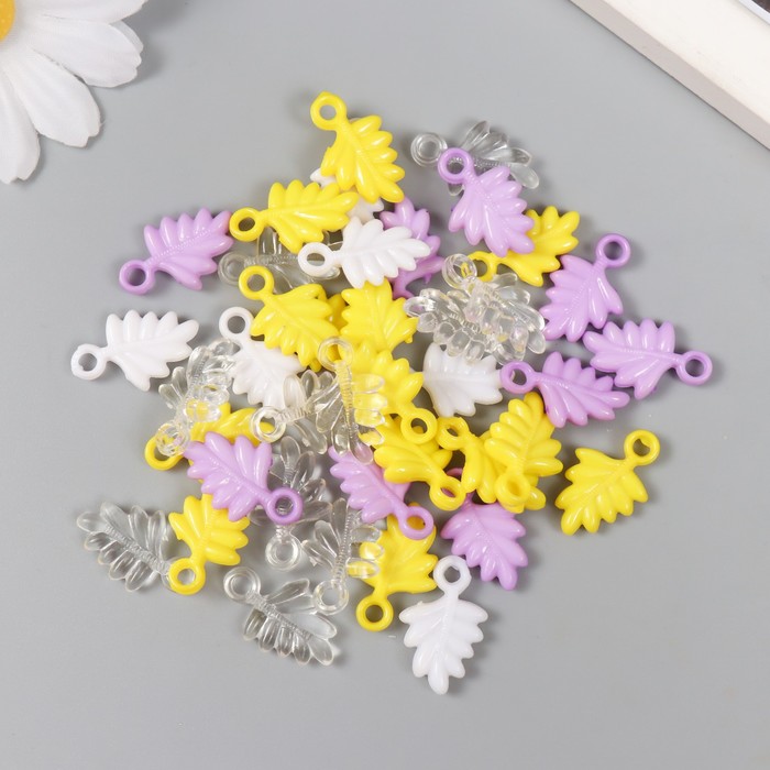 Декор для творчества «Листья. Жёлтый, фолет, белый и прозрачный», набор 20 г, 2.2×1.4×0.4 см