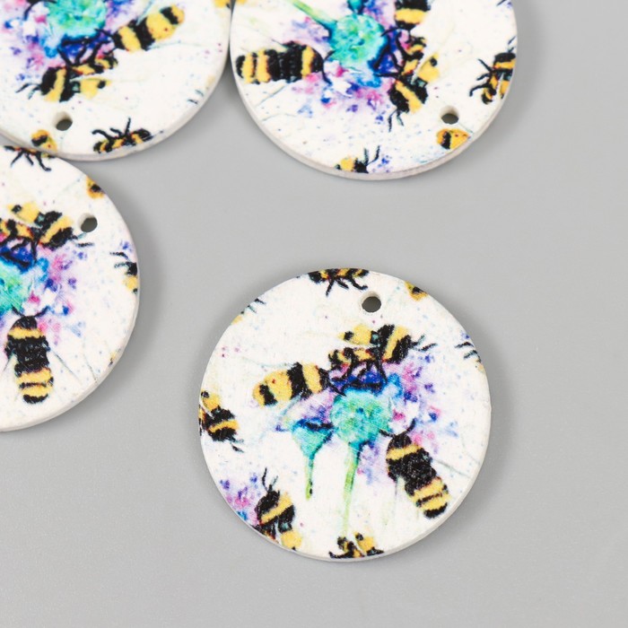 Декор для творчества дерево «Круг. Пчёлки на цветах», d=3 см