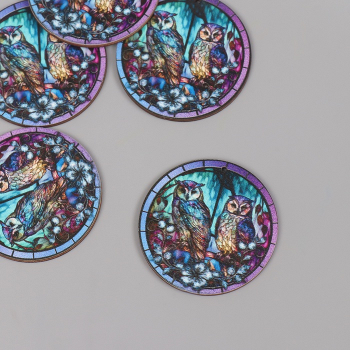 Декор для творчества дерево «Две совы в ночном лесу», 4.6×4.6×0.3 см