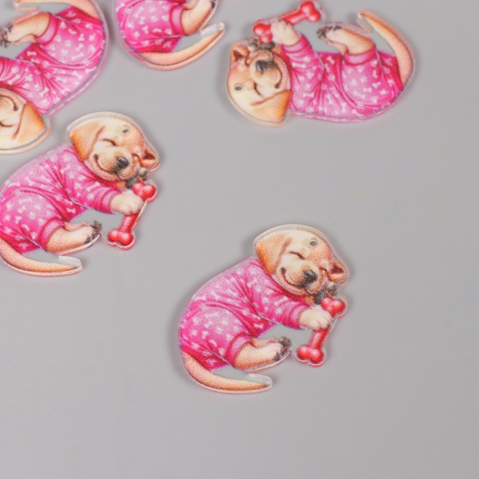 Декор для творчества акрил «Щеночек в пижамке сладко спит с косточкой», 2.5×3.4×0.2 см