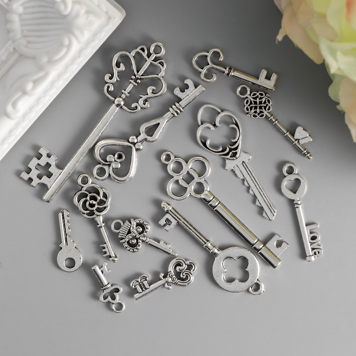 Подвески "Ключи" цвет серебро набор 13 шт 16-46 мм