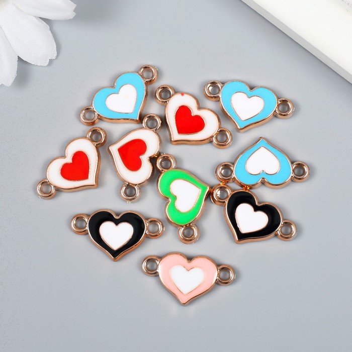 Фурнитура для бижутерии и украшений, коннектор 2 ушка «Двойное сердце», пластик под металл, набор 10 шт., 1.4×2.4 см, МИКС