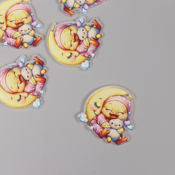 Декор для творчества акрил «Утёнок в пижамке сладко спит на месяце», 3×3×0.2 см