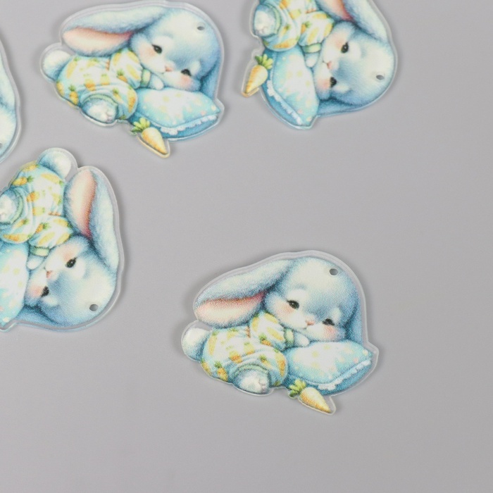 Декор для творчества акрил «Малыш зайка в пижамке засыпает», 2.9×3.4×0.3 см