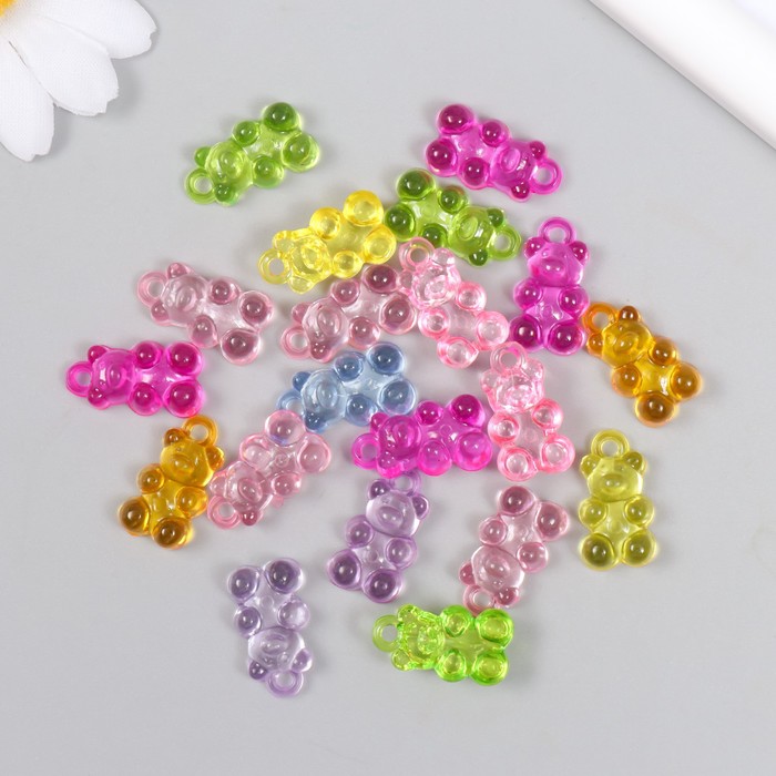 Декор для творчества пластик «Мармеладный мишка с петелькой», набор 20 шт., 0.5×1.1×1.7 см, МИКС