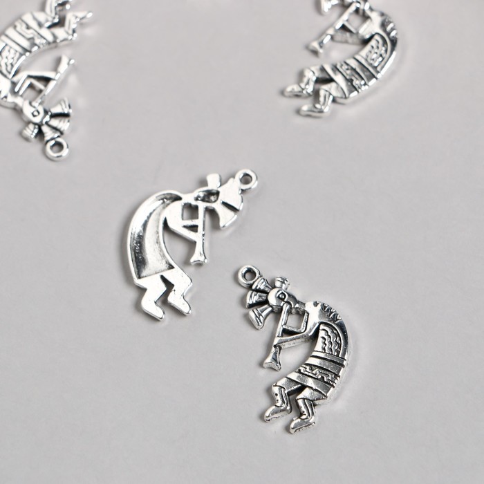 Металлический элемент, декоративная подвеска «Арт Узор. Абориген с дудкой», серебро, 2.5×1.3 см