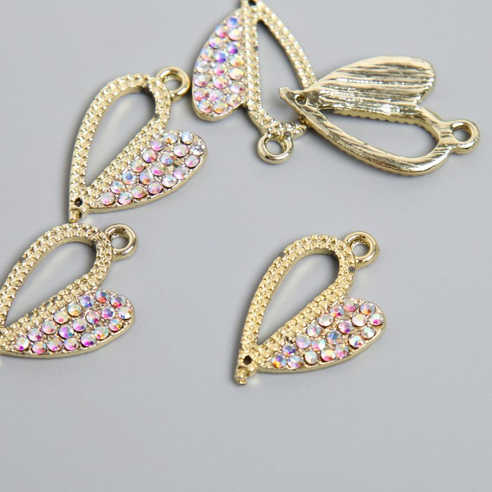 Металлический элемент, декоративная подвеска «Арт Узор. Разные половинки сердца», стразы, золото, 1.8×2.5 см