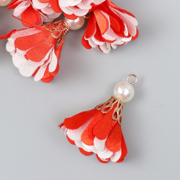 Декор текстиль «Цветок 2 с жемчужиной. Красный и белый», набор 6 шт., 3 см