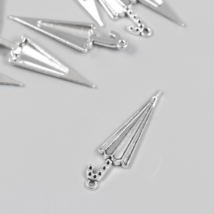 Металлический элемент, декоративная подвеска «Арт Узор. Зонтик сложенный», набор 10 шт., серебро, 1.1×4.2 см