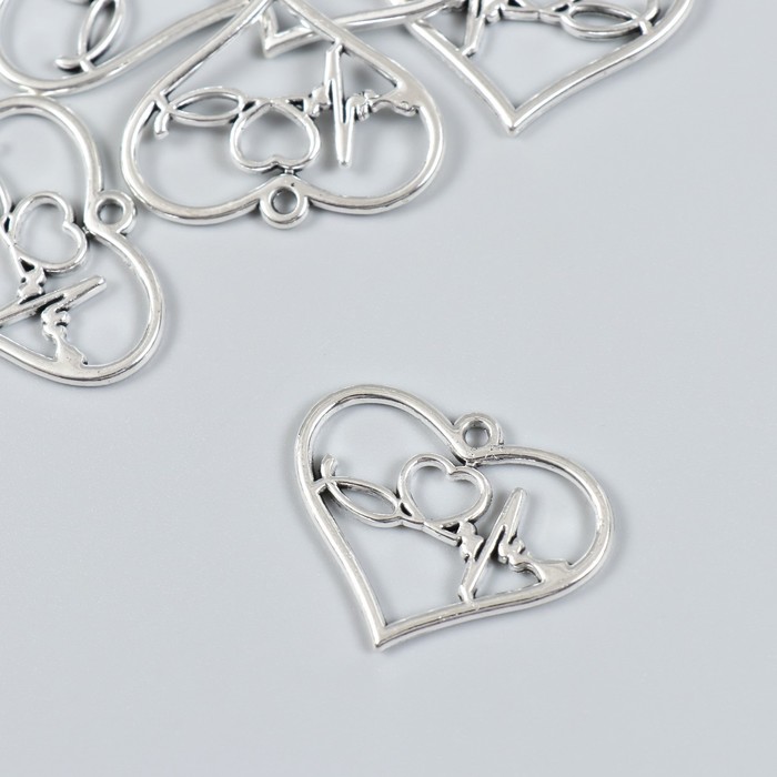 Металлический элемент, декоративная подвеска «Арт Узор. Сердечко с кардиограммой», набор 7 шт., серебро, 3×2.4 см